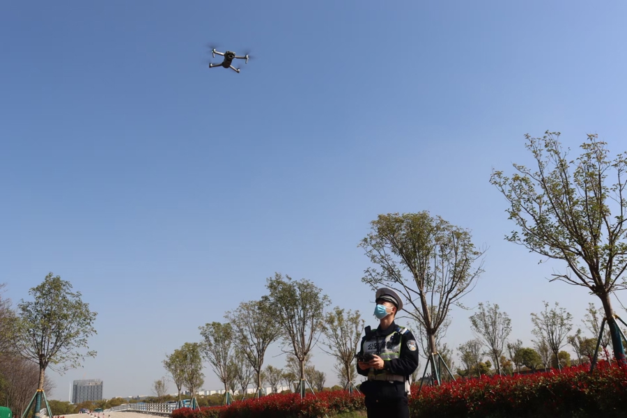 科技赋能成为今年安保亮点。警方依托警用无人机搭建“空中+地面”防控网,实时感知全区墓园周边道路车流状况,为指挥调度提供数据支撑。在墓园内部,月浦派出所运用搭载高清摄像头和扩音设备的无人机开展巡航,一旦发现人员聚集、违规焚烧等情况,立即空中喊话提醒,与地面警力联动处置,实现精准防控。